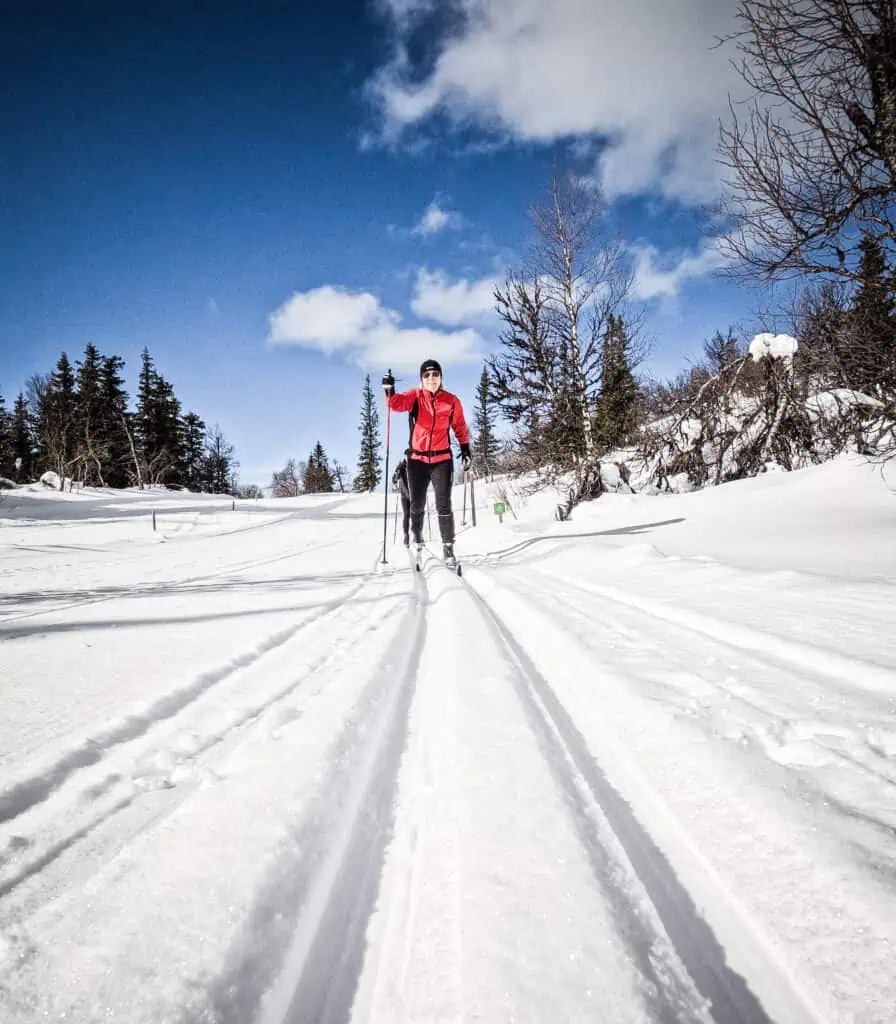 På längdskidor väntar ett av världens största spårsystem. 30 mil välpreparerade leder slingrar sig genom dalar och upp på fjäll. Här andas du högfjällsluft, hör bara stavtagens rytm – och blir ett med vinterlandskapet.