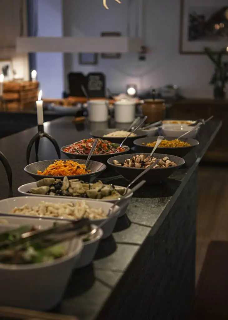 Här startar varje morgon med en stor frukostbuffé. Du hittar allt från en variation av bröd, bullar och pålägg, till nykokt havregrynsgröt, olika sorters ägg med tillbehör samt juice, kaffe, te och mycket mer.
