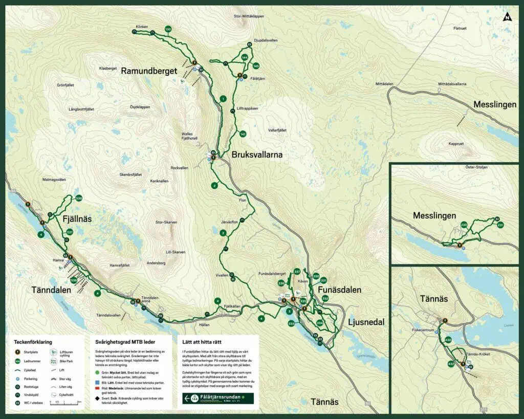 All ledcykling i Funäsfjällen och alla sommaröppna liftar i Tänndalen, Ramundberget och Funäsdalsberget.